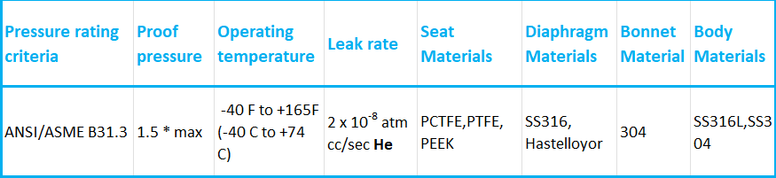 High-purity valve specifications